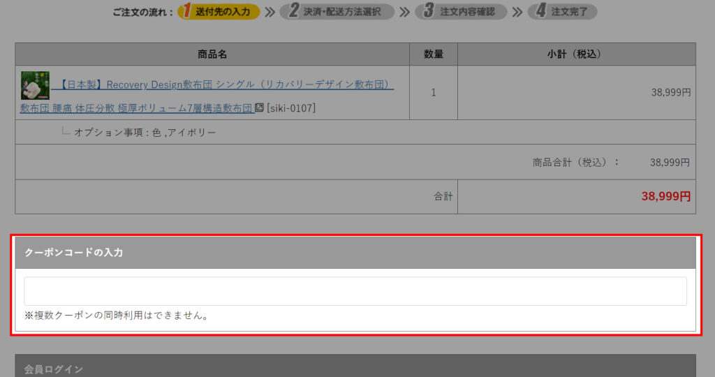 注文決済をする時にクーポンコードをコピーして貼り付けます。