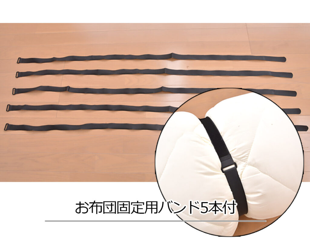 バンドを布団に巻き付け、バックルに通して貼り合わせると