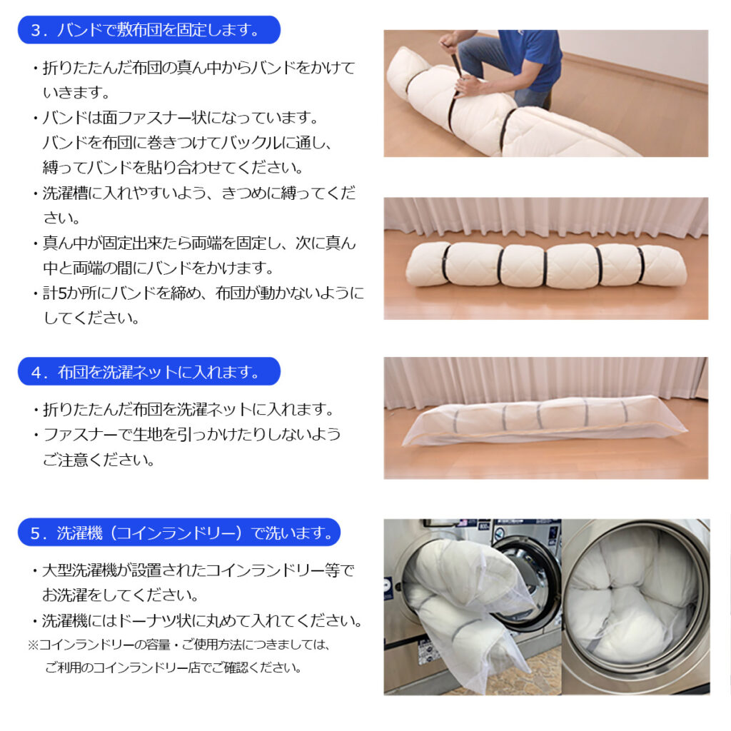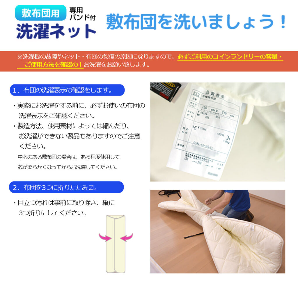梅雨時期に敷き布団を洗いたく、洗濯ネットを探していたところ、ちょうど良いものを見つけて購入しました。長年愛用している少しほころびのある布団でしたが、バンドでしっかり巻くのでコインランドリーで問題なく洗えました。とても快適で家族も喜んでいます。続けて三枚も洗ってしまいました。買って良かったです!