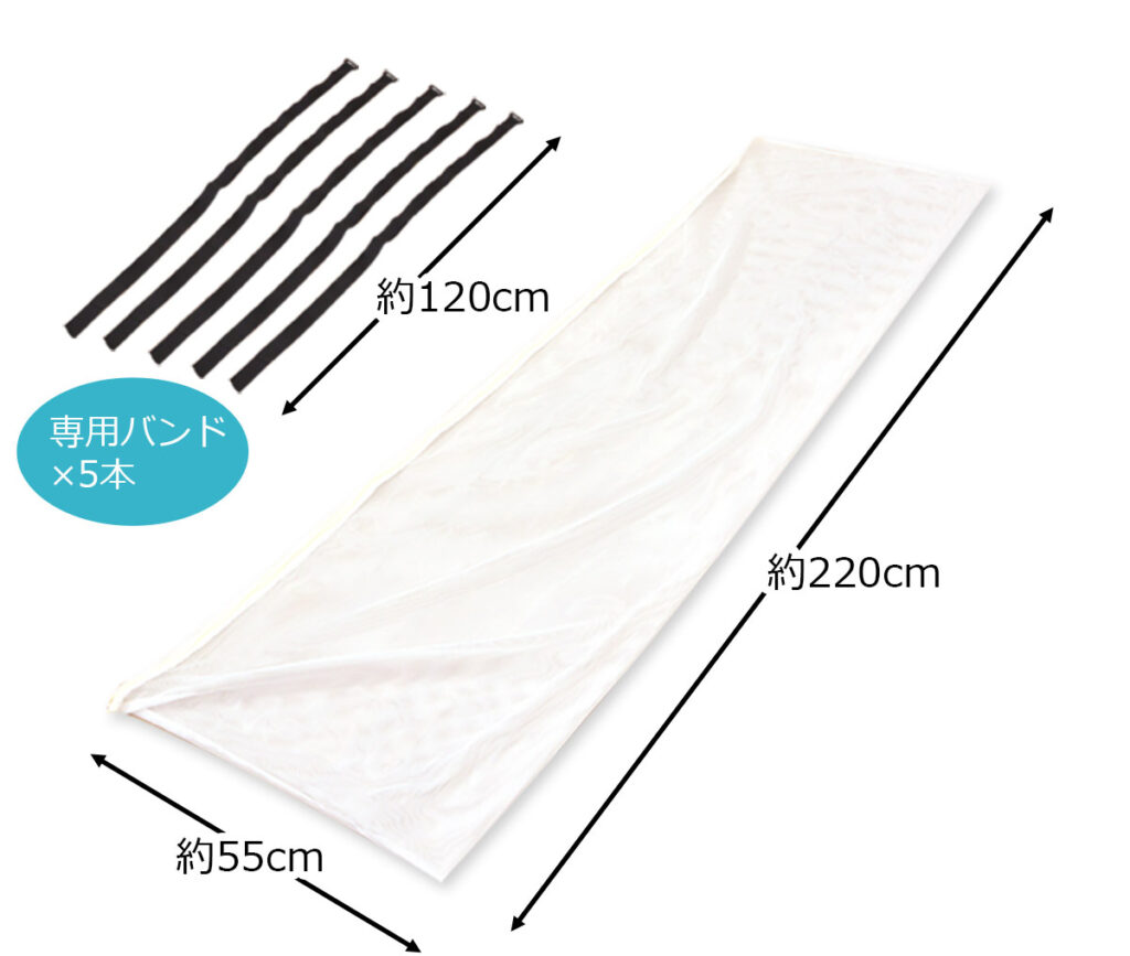 | サイズ:約55×22cm ・シングルサイズまでの敷布団に対応しています。 生地:ポリエステル100% ・全開ファスナー※長い辺が全開できます。 ・専用バンド5本つき |