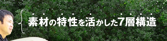 4種類の素材を組み合わせて7層に仕上げており、見た目のインパクトより重くないし、この厚みなのに折りたたみできることにも驚くと思います。