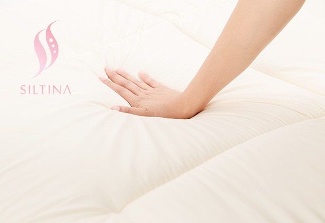 高密度で薬剤を使用しない、ダニが入り込みづらく、ハウスダストの予防、寝床内環境を快適にする吸水速乾性機能の生地「シルティナ」を使用しています。
