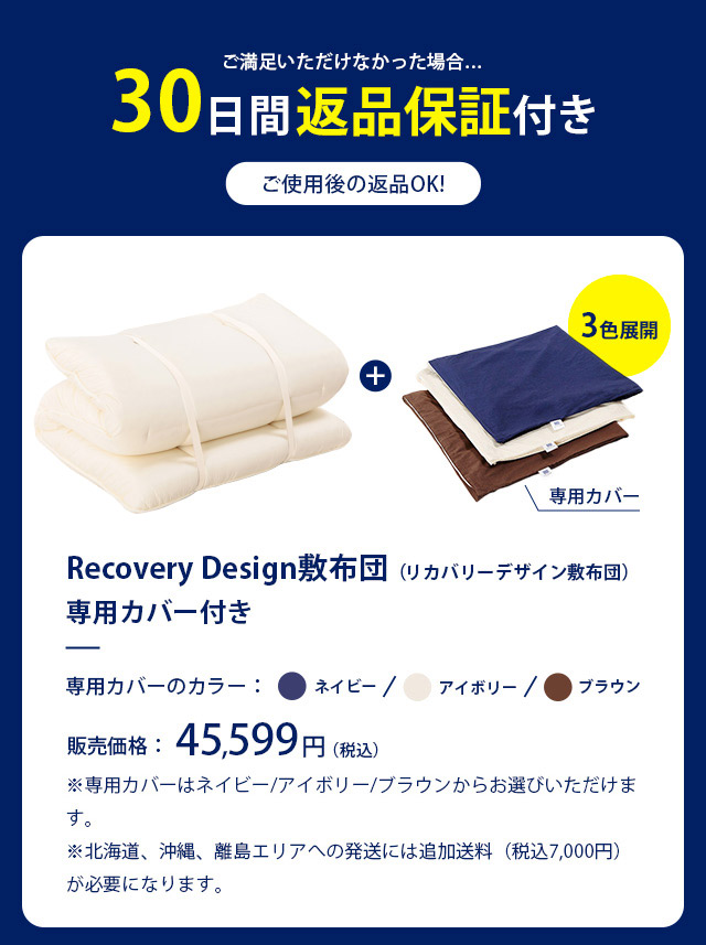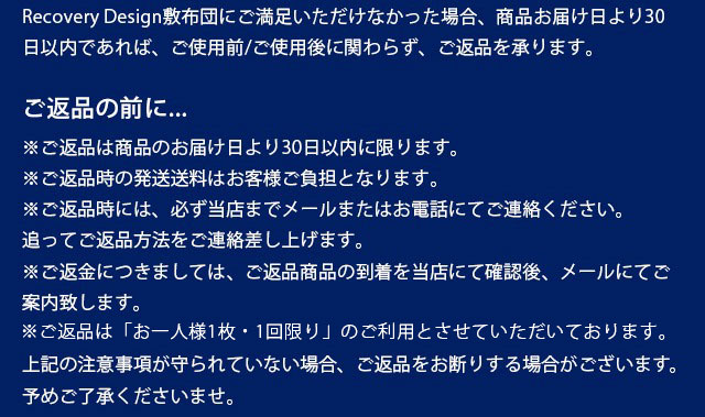 Recovery Design敷布団にご満足いただけなかった場合、商品お届け日より30日以内であれば、